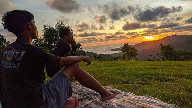 Dari ketinggian sekitar 300 mdpl, tampak bentangan Pantai Josoutro dan hamparan perbukitan selatan yang menghijau kala musim hujan tiba.