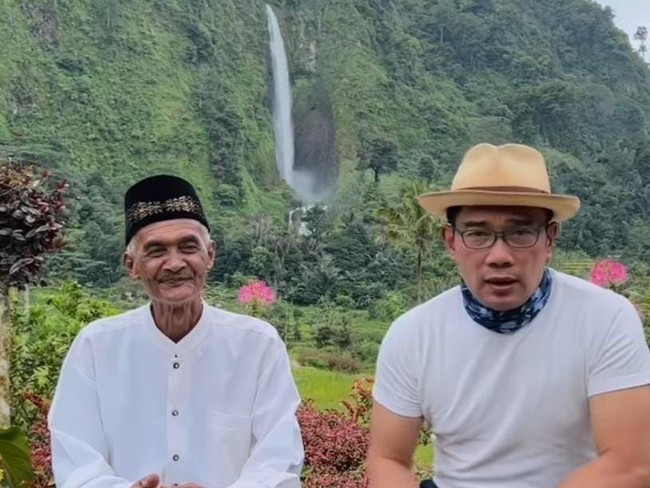 "Kemarin saya ke sana, naik motor 3 jam dari Bandung, memenuhi undangan Abah Jajang, pemilik lahan yang halamannya menghadap langsung air terjun indah ini," tulis Ridawan Kamil dalam postingannya.