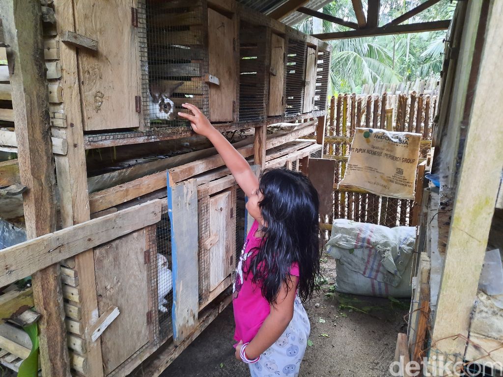 Peternakan kelinci di halaman rumah Togu Simorangkir. Air kencing kelinci ditampung untuk bahan pupuk tanaman. Foto: Putu Intan/detikcom |