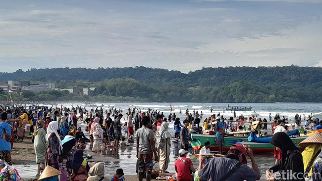Kemacetan terjadi hingga 4 km di area pantai Pangandaran dari pantai barat yang mengular ke pantai timur depan Pos Polairud Polres Pangandaran.