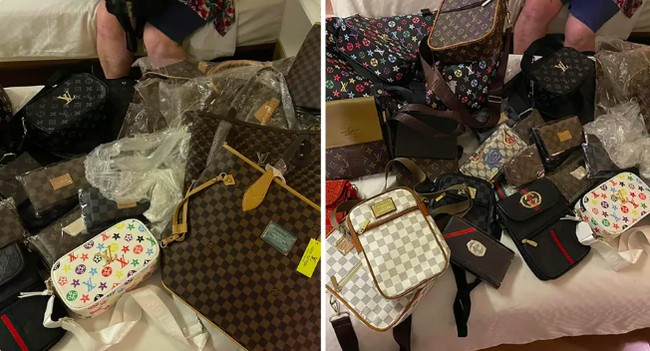 Ternyata, oleh-oleh dari wanita ini bukanlah makanan atau kerajinan tangan melainkan tas branded palsu. Dia bahkan membawa lebih dari selusin tas dan dompet Luis Vuitton dan Gucci palsu.