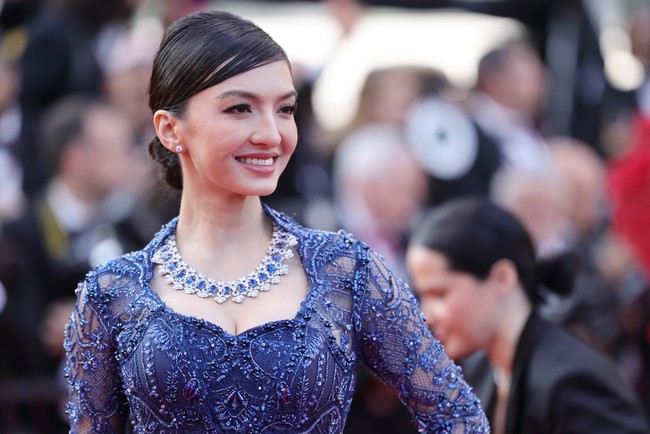 Aktris Raline Shah tampil anggun berkebaya di red carpet Cannes Film Festival. Ia memilih kebaya untuk memperkenalkan budaya Indonesia.