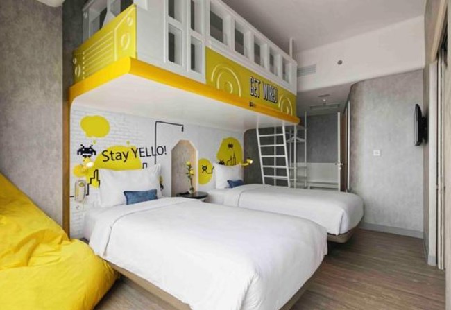 YELLO Harmoni menawarkan pengalaman menginap seru melalui paket Stay & Play di kamar tematik YELLO Family Suite dengan 2 kamar tidur yang terdiri dari 1 tempat tidur untuk dewasa, dan 1 tempat tidur model ranjang tingkat yang dapat mengakomodasi 3 orang. Dengan harga paket Rp 2.8 juta per malam, Anda sudah mendapatkan satu malam menginap dengan fasilitas permainan game console yang dapat Anda mainkan bersama sahabat.