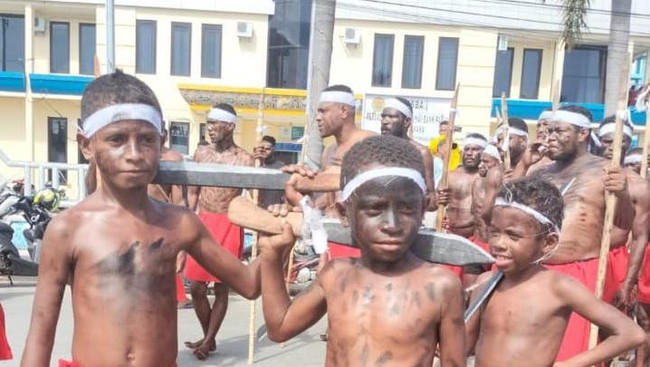 Ribuan masyarakat Kabupaten Kaimana Provinsi Papua Barat tumpah ruah ke jalan. Persisnya di pesisir Pantai Bantemi.
