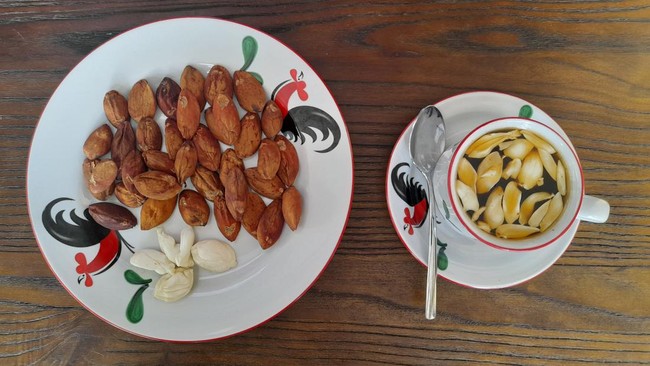 Kopi ini dikenal sebagai kopi kenari, kopi tubruk disajikan dengan topping buah kenari. Kopi ini memiliki rasa sangat enak, ada tekstur renyah dan rasa gurih kenari.