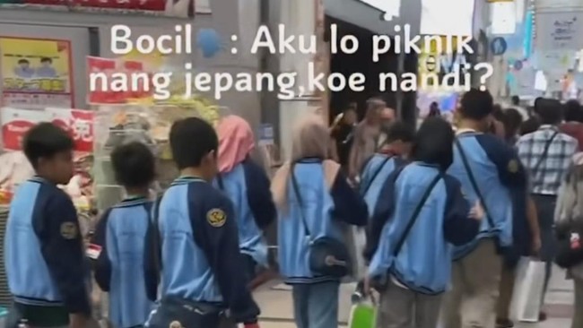 Dalam video viral tersebut, tampak para siswa usia sekolah dasar mengenakan baju seragam bertuliskan SD Muhammadiyah 4 Surabaya. Mereka tengah berjalan di jalanan kota Jepang.