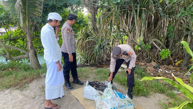 "Temuan itu kemudian dilaporkan ke satpam restoran dan ke pos polisi di kawasan Petitenget. Akhirnya, pemangku di Pura Petitenget dipanggil untuk memeriksa barang-barang itu," imbuh Sudana.