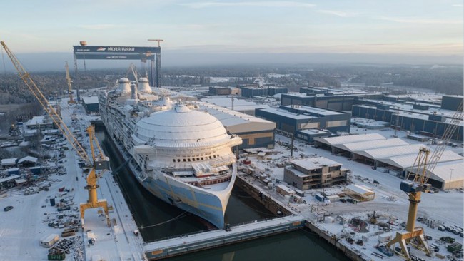 Sebuah kapal yang akan menjadi kapal pesiar terbesar di dunia telah menyelesaikan konstruksi di sebuah galangan kapal di Finlandia. Ia telah terjun pertama kali ke perairan terbuka untuk uji coba laut menjelang kemungkinan pengiriman pada bulan Oktober tahun ini.