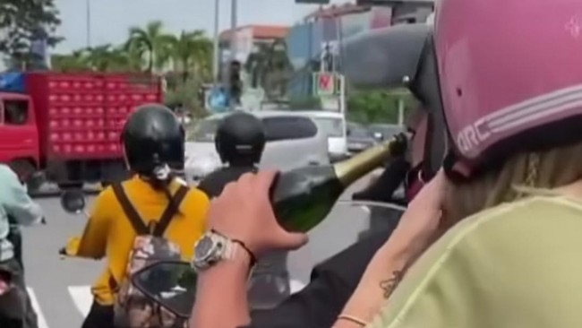 Ulah nyeleneh turis bule di Bali viral lagi. Kali ini ada pasangan bule yang naik motor sambil menenggak sebotol wine. Polisi akan menyelidiki kasus ini.