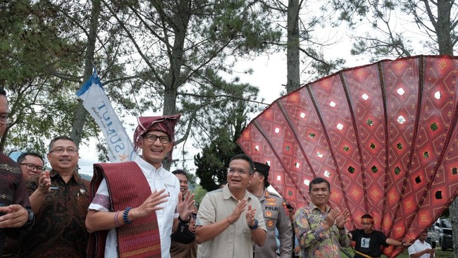 Menteri Pariwisata dan Ekonomi Kreatif (Menparekraf), Sandiaga Salahuddin Uno kembali menginjakkan kakinya di Kaldera Toba, Kabupaten Toba, Sumatera Utara pada Rabu (17/7/2023).