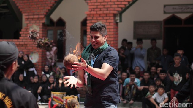 Permainan tradisional bola api dari Sukabumi menarik perhatian dua warga Palestina. Mereka pun menjajal main bola api, seperti apa aksi keduanya?