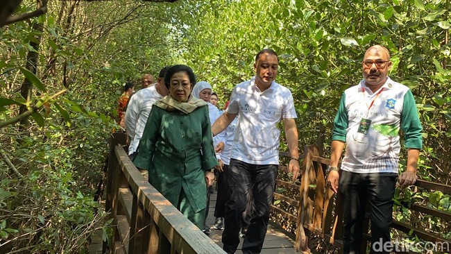 Megawati tiba di Kebun Raya Mangrove Surabaya pukul 10.09 WIB. Setelah tiba, ia ditemani Eri dan Khofifah berjalan melewati jembatan yang dikelilingi mangrove.
