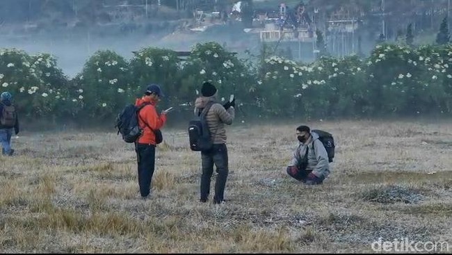 Suhu kawasan Dieng sedang dingin-dinginnya, menembus minus 3,5 derajat celcius. Tapi, wisatawan malah senang dengan suhu itu karena bisa berburu embun es.