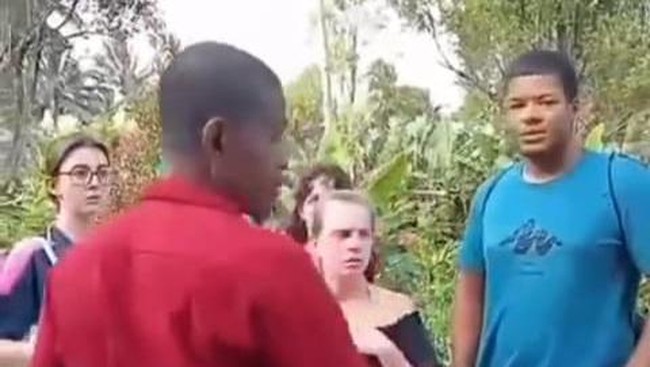 Pria berbaju merah itu tidak sendirian. Rekannya mengarahkan kamera merekam rombongan wisatawan yang tampak bingung karena terkendala bahasa. Salah satu wisatawan perempuan kemudian tampak kesal dan meminta untuk berhenti merekam rombongannya.