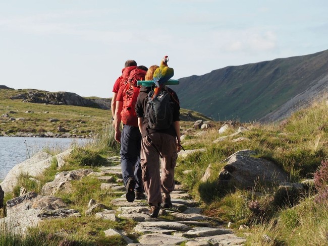Wanita itu adalah bagian dari sekelompok pemilik burung beo dari Derbyshire yang berjalan-jalan di Eryri, atau Snowdonia, di Wales, menurut postingan Facebook dari Tim Penyelamat Gunung Lembah Ogwen.