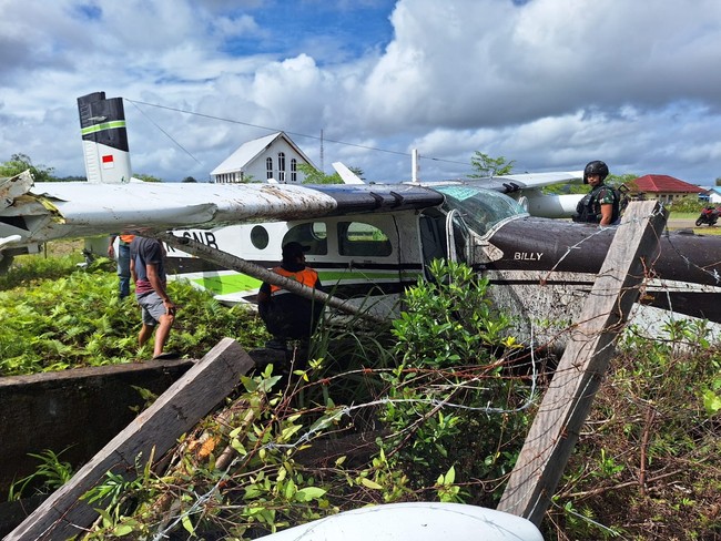 Pesawat Smart Air dengan nomor registrasi penerbangan PK-SNB tergelincir di Bandara Kenyam, Kabupaten Nduga, Papua Pegunungan.