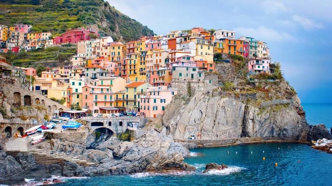 Cinque Terre terkenal dengan rumah-rumah yang memiliki tinggi berbeda-beda, seolah tumbuh dari dasar yang tidak rata. Rumah-rumah itu semakin mencolok dengan cat warna-warni. Rumah-rumah itu memang berada di tempat yang tidak biasa, ada di tebing. Di bawahnya, perahu nelayan bergoyang-goyang di atas air merapat di pelabuhan.