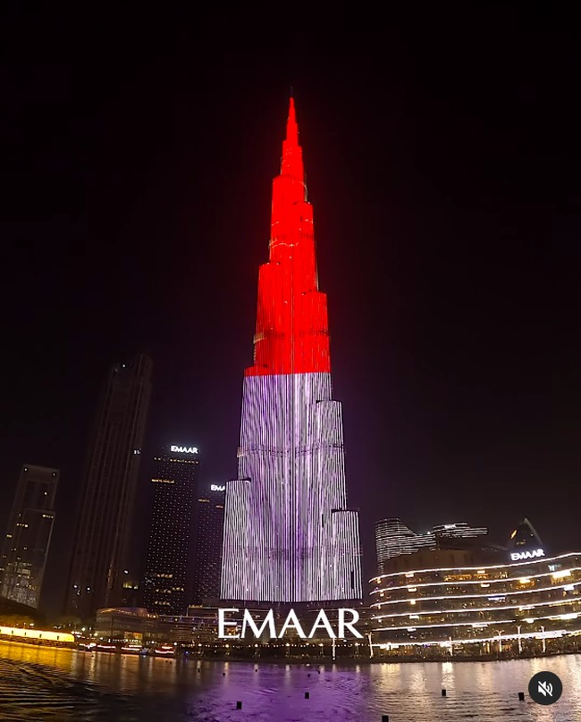 Burj Khalifa di Dubai, Uni Emirat Arab mengunggah sebuah video spesial. Bendera merah putih muncul di badan gedung. Video itu juga mengumandangkan lagu Indonesia Raya.