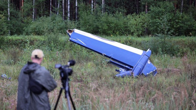 Pesawat yang membawa pemimpin kelompok tentara bayaran Wagner Group, Yevgeny Prigozhin, dilaporkan sempat menukik tajam 30 detik sebelum jatuh di Tver, Rusia, pada Rabu (23/8).