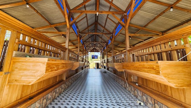 Dari bahannya saja, kandang kambing ini diketahui hampir sebagian besar dari kayu jati. Tak hanya itu, lantainya juga menggunakan keramik.