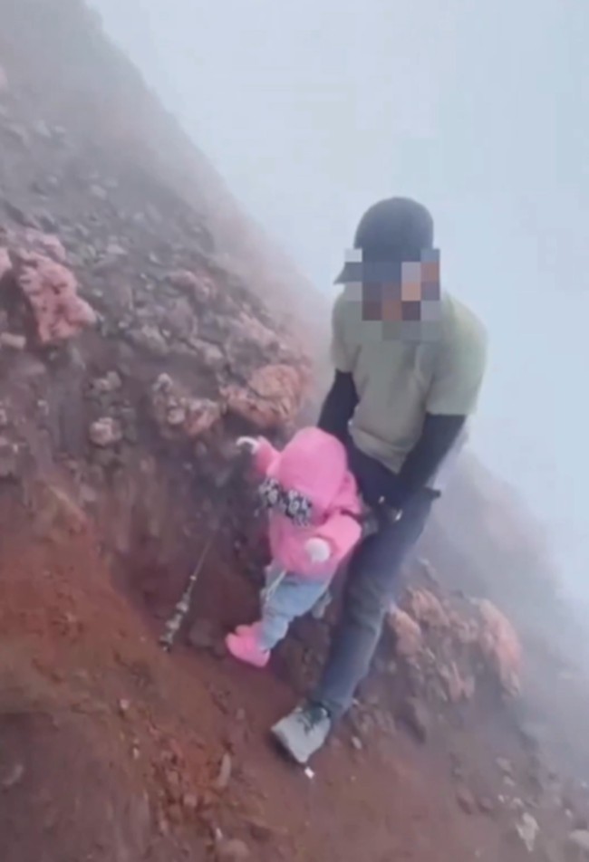 Dikutip dari detikSumbagsel, Senin (11/9), tampak balita tersebut berjalan sambil dipegang orang tuanya. Karena diduga tak sanggup berjalan lagi di tanjakan curam, orang tuanya menggendong kembali anaknya.
