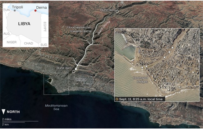 Derna rentan terhadap banjir, dan waduk bendungannya telah menyebabkan setidaknya lima banjir mematikan sejak tahun 1942.