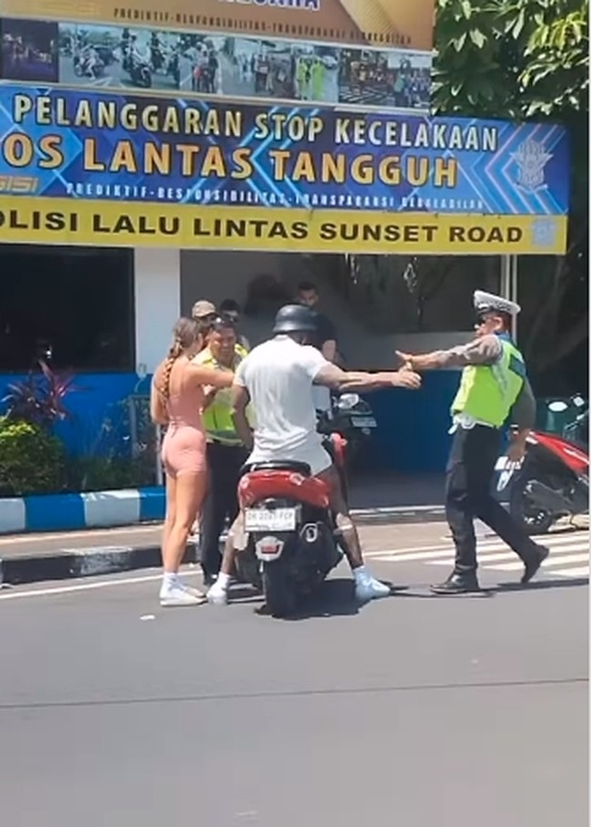 Viral video yang memperlihatkan bule melawan saat ditilang polisi. Kejadiannya sekitar pukul 13.00 Wita di Pos Polisi Jalan Sunset Road, Badung, Bali.