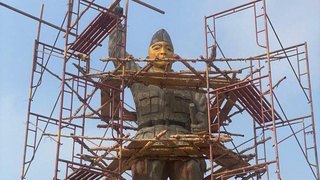 Patung yang berdiri di kawasan Bung Karno Sport Center Banyuasin, Sumatera Selatan itu menuai sorotan karena terkesan dibangun asal-asalan.
