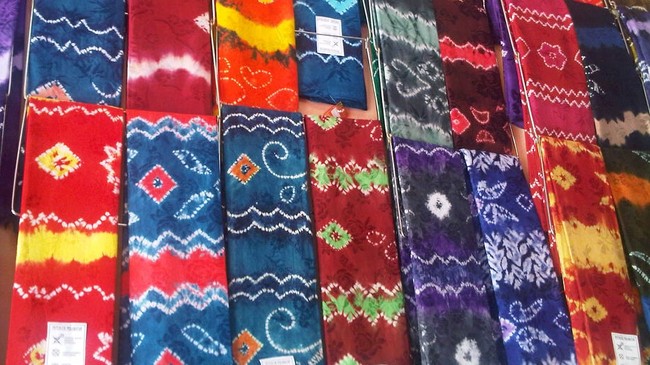 Teknik pembuatannya terbilang rumit karena memerlukan proses pewarnaan yang banyak. Peralatannya pun unik, dibuat dengan memakai kain pembatas dari tali atau benang dengan ukuran tertentu, bukan malam atau lilin juga canting.