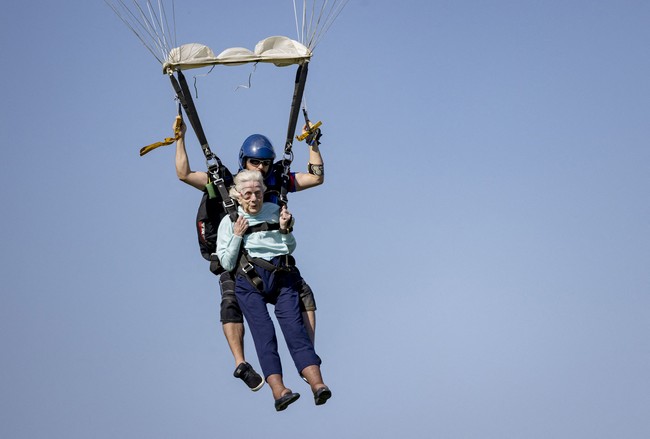 Wanita pemberani berusia 104 tahun itu meninggal dalam tidurnya pada hari Senin (9/10). Aksi terjun payungnya berlangsung pada 1 Oktober 2023.