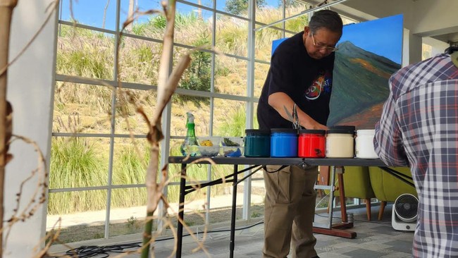 "Pak SBY punya hobi melukis. Jumat pagi tadi melukis keindahan Merapi. Melukis di cafe Langit Pitu," jelas Dwi.