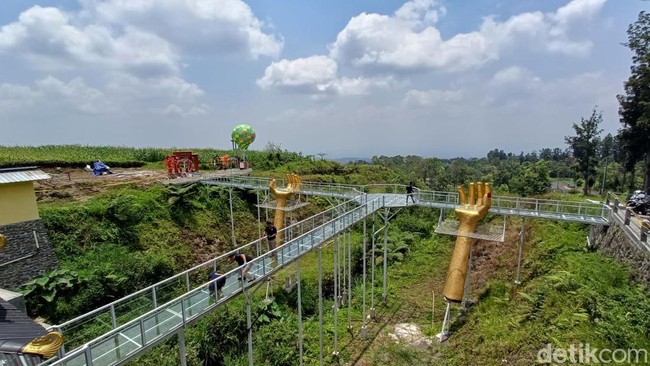 Tim dari DPU tampak mengamati dan membawa sampel jenis kaca yang digunakan di lokasi wisata tersebut. Mereka juga terlihat mengukur jarak antar tiang penyangga. Sekitar 15 menit, tim ini langsung naik ke atas.