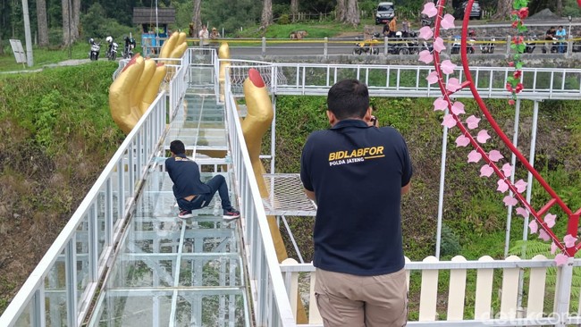"Kita terima informasi ada kecelakaan, dimana ada orang terjatuh dari jembatan kaca. Setelah itu kita datang dan memasang police line. Ini untuk sementara kita tutup," kata Edy kepada wartawan, Rabu (25/10).