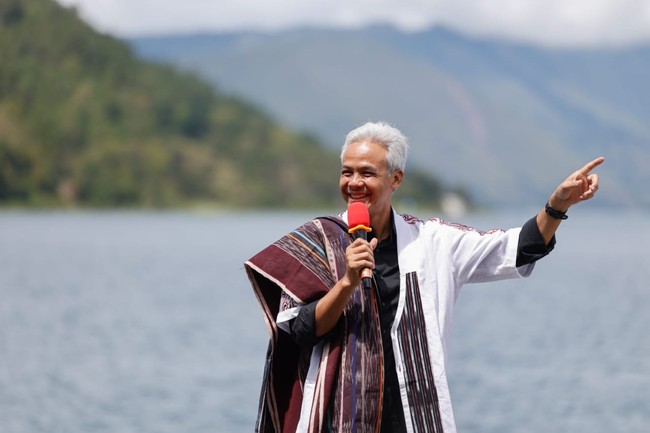 Calon Presiden Ganjar Pranowo melakukan safari ke Danau Toba. Melihat keindahan Danau Toba, ia ingin mendorong destinasi itu menjadi wisata kelas dunia.