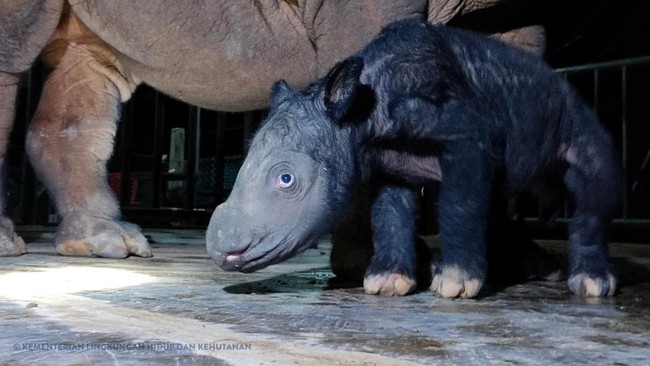 Menteri LHK Siti Nurbaya mengatakan anak badak sumatera itu berjenis kelamin jantan. Badak itu berasal dari induk Delilah dan Harapan.