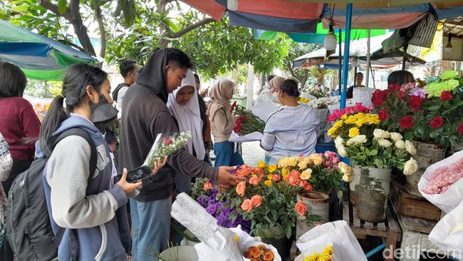 Tak hanya ramai oleh pembeli bunga, mereka yang mengunjungi Pasar Kembang di Jalan Honggowongso, Kemlayan, Kecamatan Serengan, Kota Solo itu juga untuk membuat konten, bahkan sekadar jalan-jalan bersama pacar.