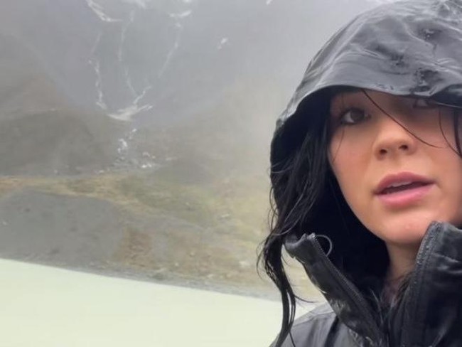 Pendaki wanita terjebak badai dan mencurahkan kekesalannya karena jaketnya yang disebut waterproof ternyata basah kuyup.