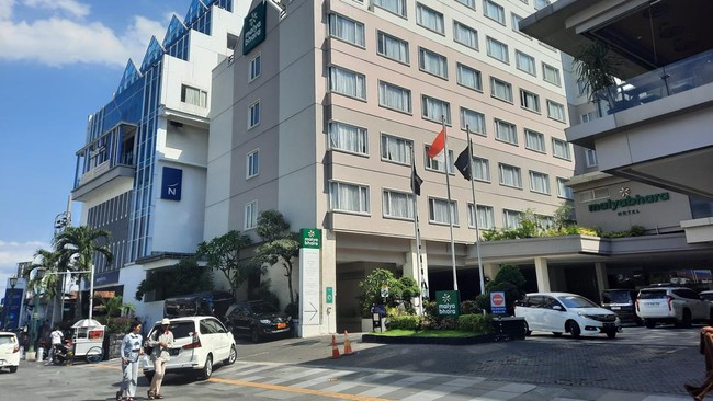 Tak cuma destinasi, hotel-hotel di Yogyakarta juga ramai pengunjung. Hal tersebut tampak dari area parkir hotel yang dipenuhi kendaraan berplat luar kota.