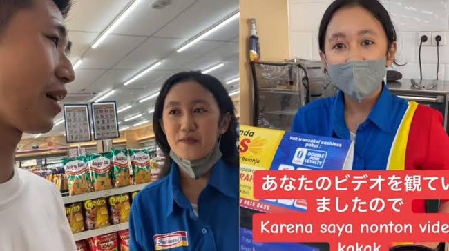 Dia diajak ngobrol oleh kasir minimarket tersebut menggunakan bahasa Jepang. Rupanya, sang kasir minimarket mahir cas cis cus dalam bahasa Negeri Sakura. Video itu sudah ditonton 13,6 juta kali.