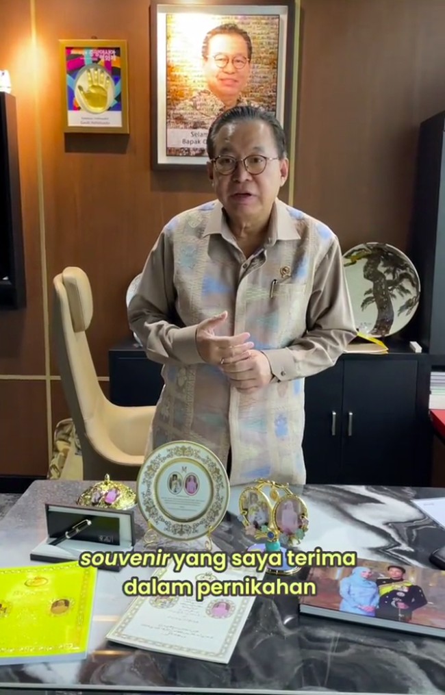 Lewat akun TikToknya, Diplomat RI ini mengunggah video unboxing suvenir pernikahan Pangeran Mateen.