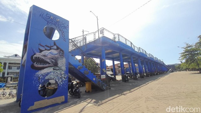 Bukan hanya infrastruktur bangunannya saja, Skywalk Pangandaran menarik buat berfoto dengan lukisan-lukisan biota lautnya sejak diresmikan. Lukisan 3D di skywalk itu bikin foto makin sip.