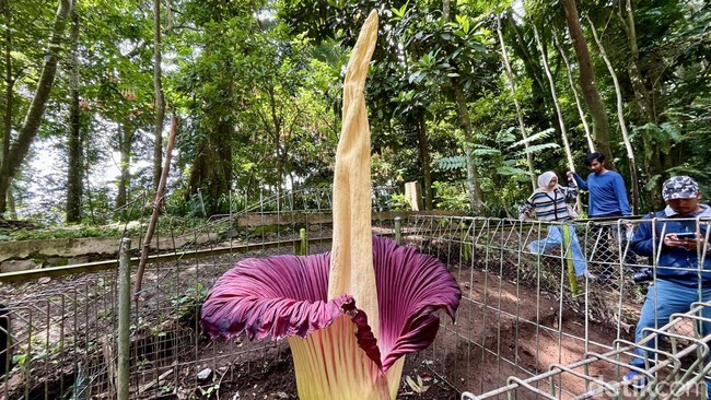 "Jadi bunga bangkai ini pada hari Kamis (25/1) 19.00 sore masih mengerucut, kuncup begitu. Begitu Jumat pagi, itu mekar sempurna di tinggi 2 meter 7 sentimeter, itu termasuk rekor ya tingginya. Tapi hanya bertahan lima jam. Sekitar jam 12 siang sampai sore begitu sudah mulai berubah tidak sesegar itu lagi warnanya," kata Dicky, Pengendali Ekosistem Hutan di Tahura Djuanda, Bandung.