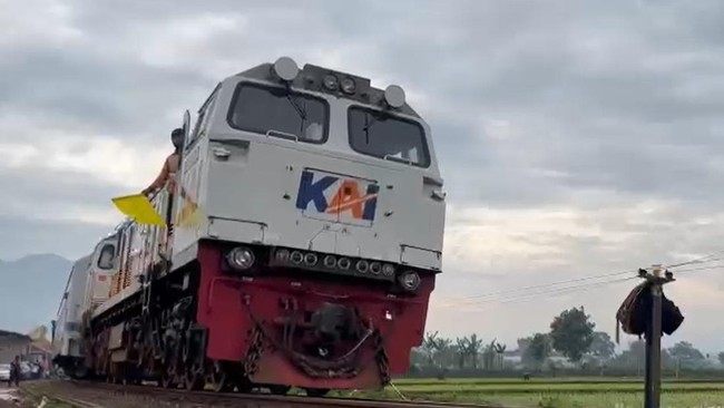 Simak Video " Video: Momen Pria Kejar Kereta Beri Tahu Masinis Sambungan Terlepas di Pasar Senen"