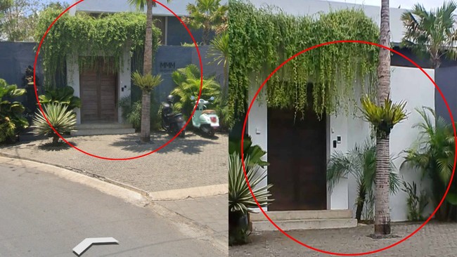 Warna sebagian bidang tembok depan vila itu sudah berganti dari abu kebiruan menjadi putih (berdasarkan pencocokkan di Google Earth). Tulisan Akrilik nama vila MMM yang terpampang di sisi kiri pintu kini sudah tak terlihat.
