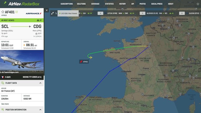Diketahui bahwa penerbangan Air France dari Paris CDG menyatakan keadaan darurat dan melakukan pengalihan. Pesawat Boeing 777-200ER berangkat dari Paris CDG pada pukul 16.50.