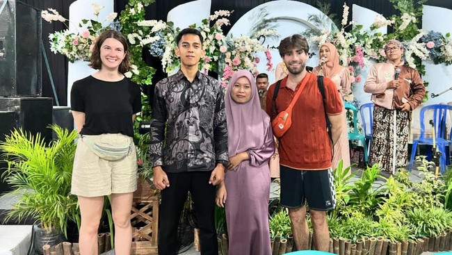 Dalam video yang diunggah akun tersebut, terlihat pasangan turis bule ini disambut ramah oleh sang tuan rumah. Kedua tamu tak diundang itu juga disilakan untuk menyantap hidangan dan berbaur dengan tamu lain. Mereka juga berfoto bersama mempelai.
