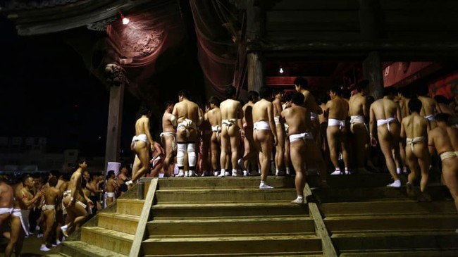 Festival Sominsai atau festival pria telanjang di Jepang kembali digelar setelah pandemi. Namun, peserta pria muda berkurang.