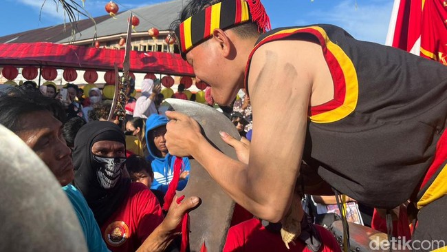 Ritual pemanggilan roh itu dipimpin oleh seorang pendeta di kelenteng yang terlebih dulu meminta izin Dewa Kemakmuran Toa Pek Kong supaya diberi keselamatan dan keberkahan.