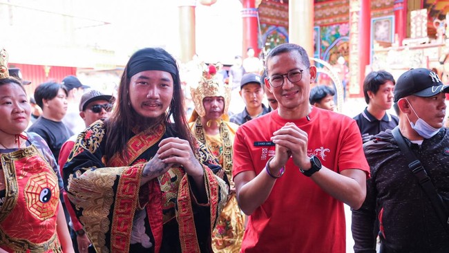 Menteri Pariwisata dan Ekonomi Kreatif (Menparekraf) Sandiaga Uno mengacungi jempol pelaksanaan Cap Go Meh di Singkawang, Kalimantan Barat. Acara itu dinilai setara konser penyanyi besar.
