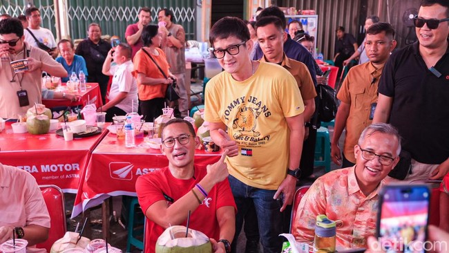 Pada Sabtu (24/2/2024), usai menyambangi Vihara Dewi Kwan Im, Sandiaga singgah di tenda merah itu. Dia bikin pengunjung dan penjual heboh.